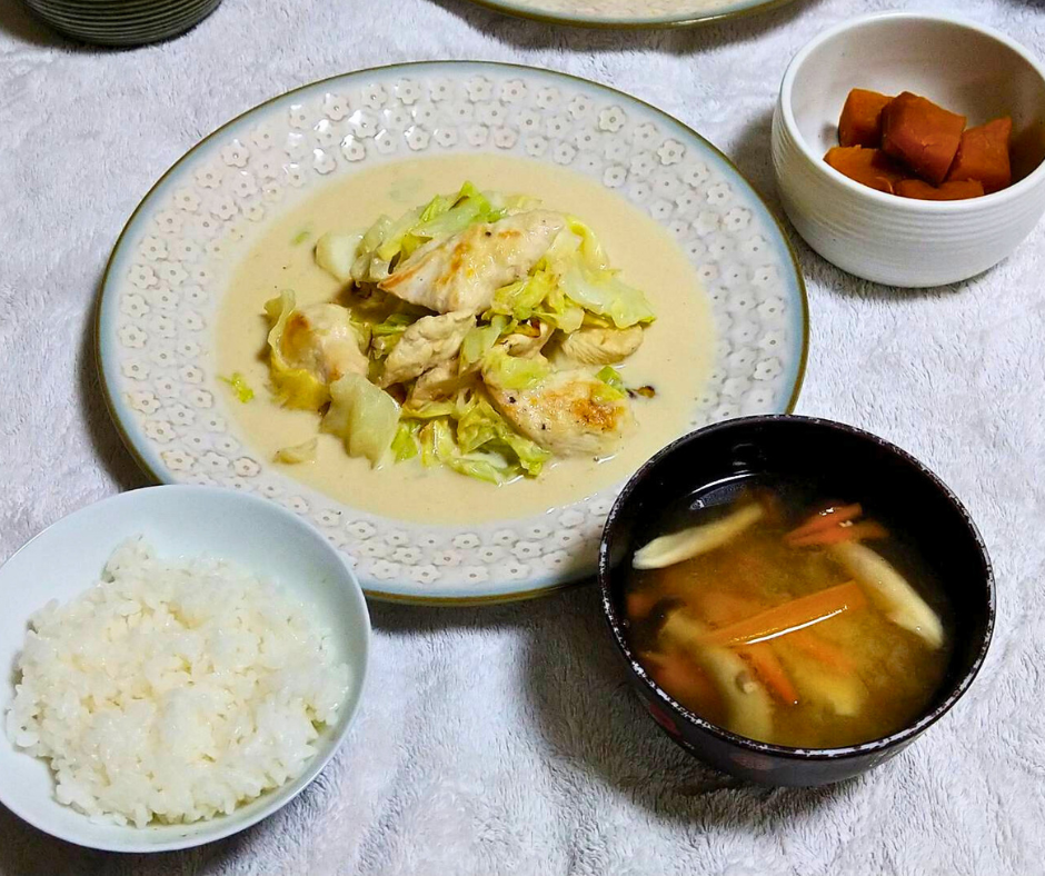 🥘鶏むね肉とキャベツのクリーム煮(豆乳ソース)
