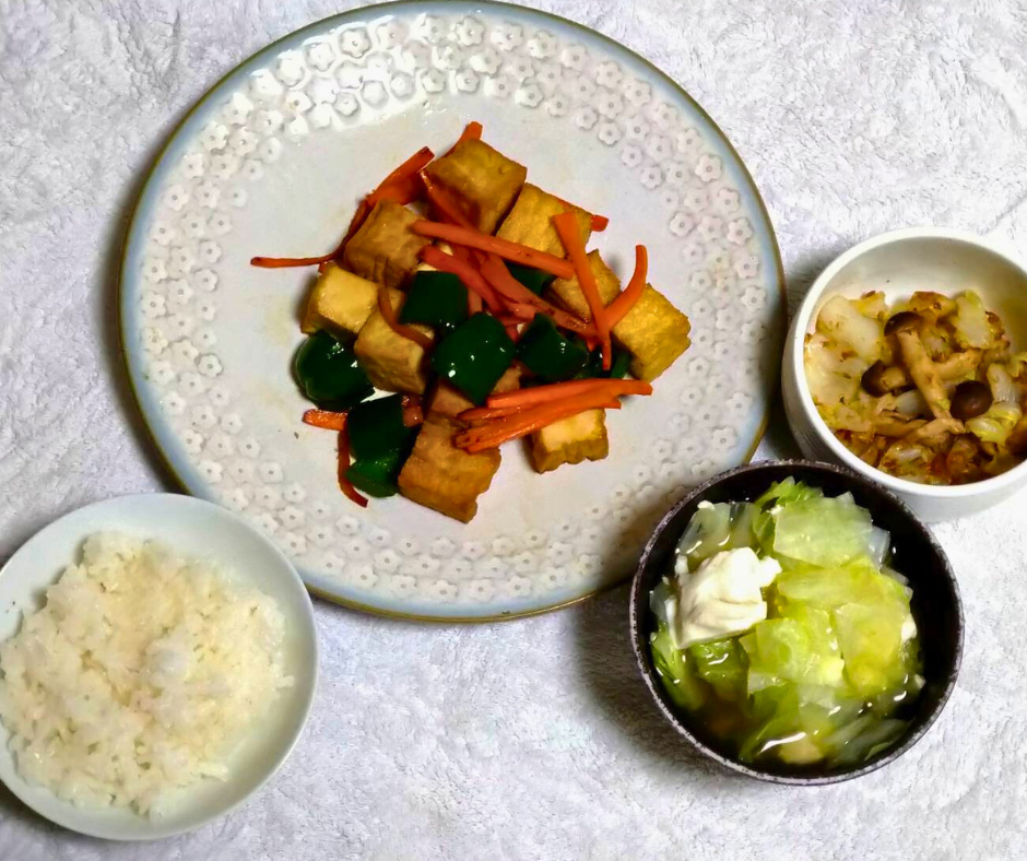 🥘厚揚げとピーマン・人参の甘辛炒め
